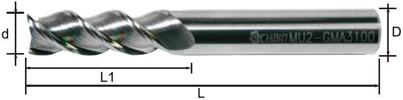 铝合金专用 3 刃圆沟 2离隙立铣刀 MU2-GMA 3000